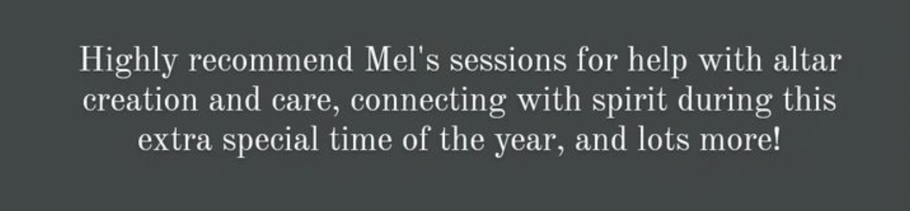 "I look forward to sessions with Mel. I feel so strong and calm after talking with her and it makes me feel at ease for the months ahead. I really have grown through working together and am welcoming new shifts into my life. Thank you so much!"